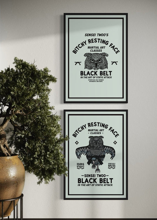 Bitchy Resting Face - Black Belt - Sensei Twoo | Retro Logo Style Print