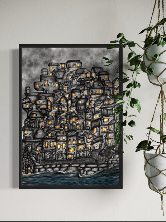 Village Lights | Line Art Print | Detail line work