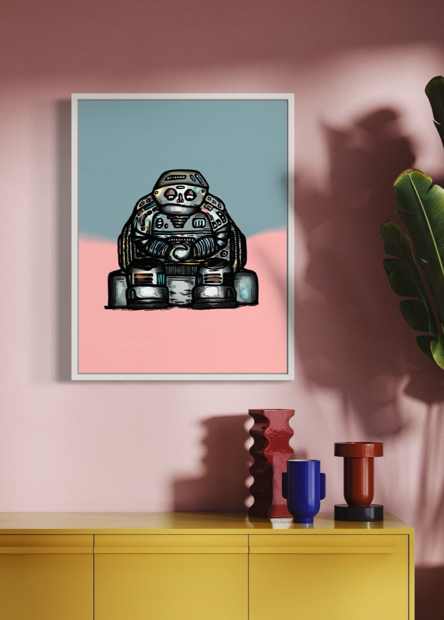 Moxi Prints are delivered in a rigid postal tube, rolled and unframed.