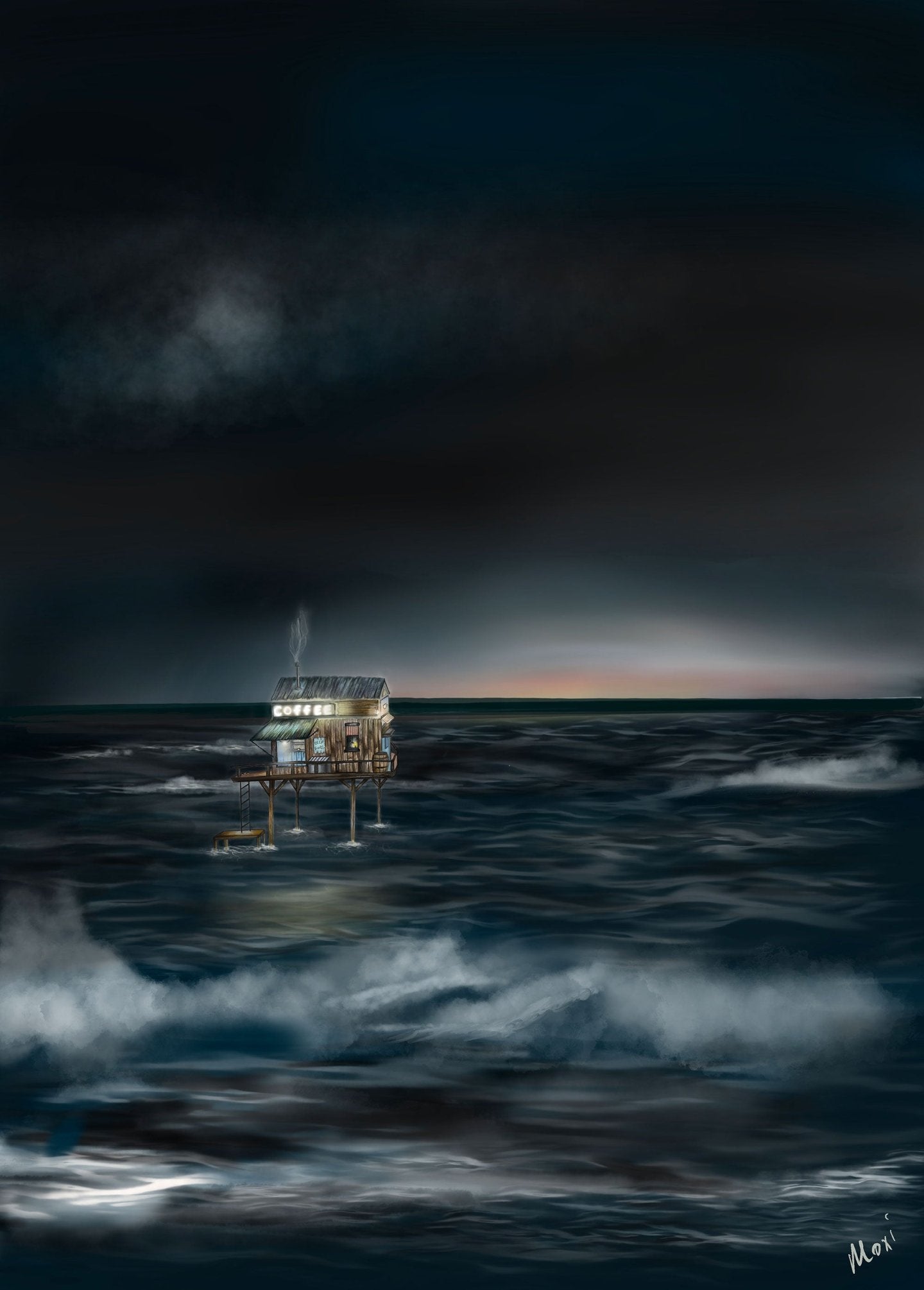 This hyper detailed but ambient and atmospheric print looks great in a black frame without a boarder.