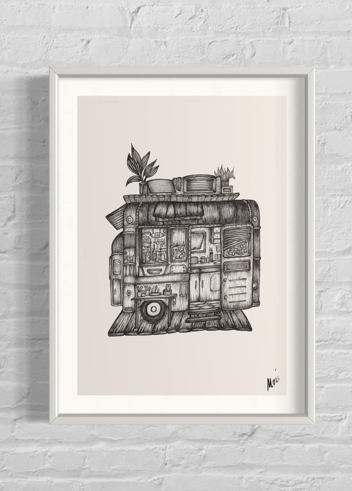 Moxi Prints are delivered in a rigid postal tube, rolled and unframed.