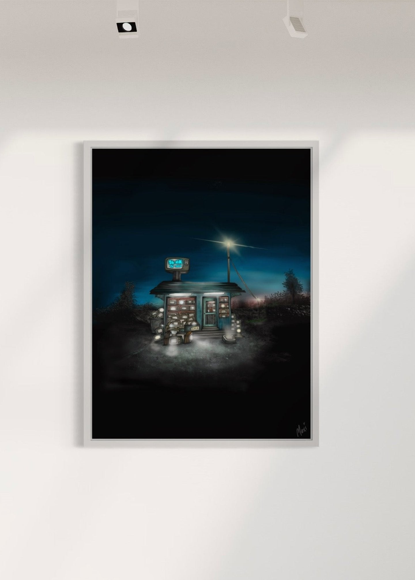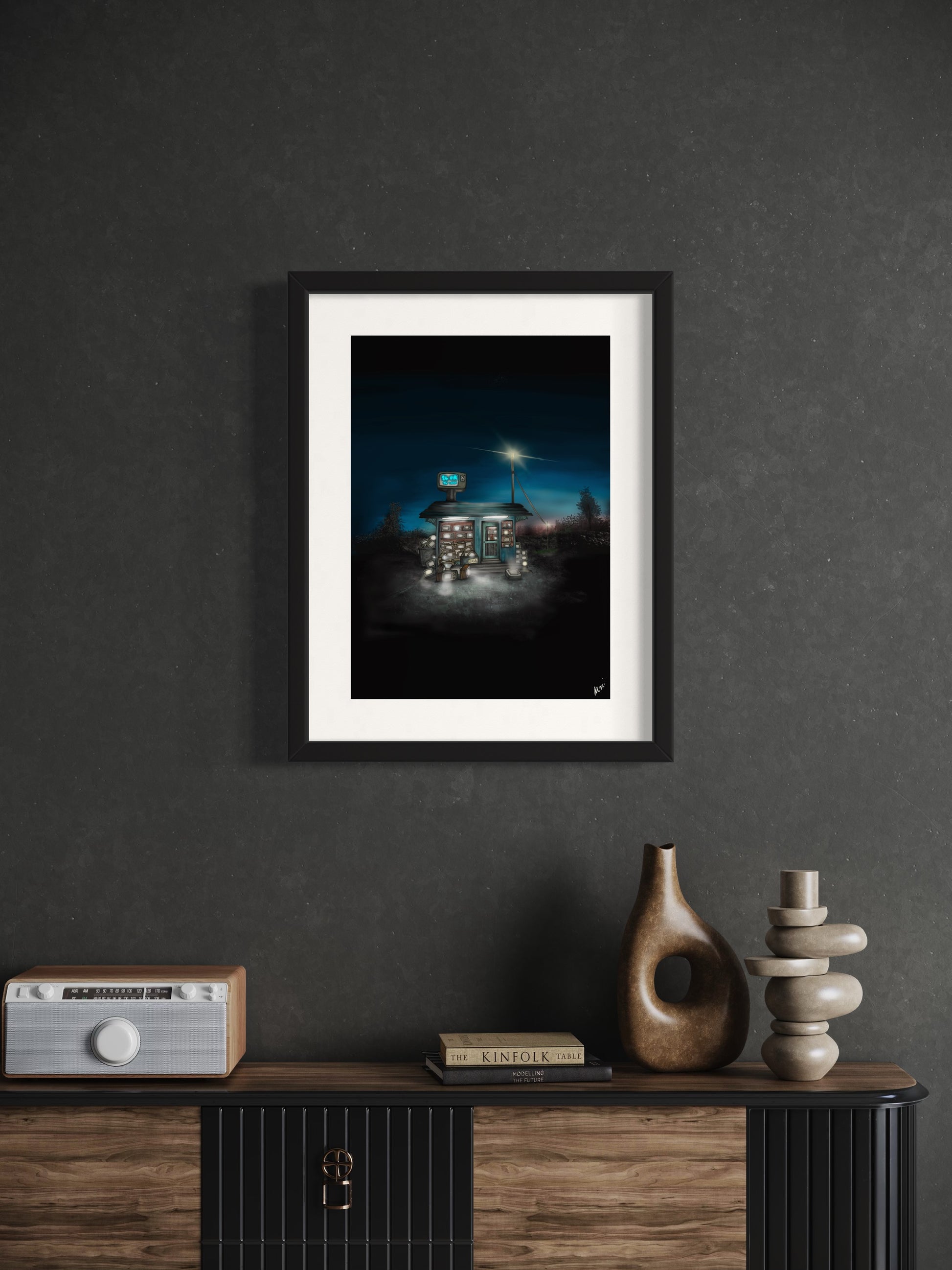 Moxi Prints are delivered in a rigid postal tube, rolled and unframed.