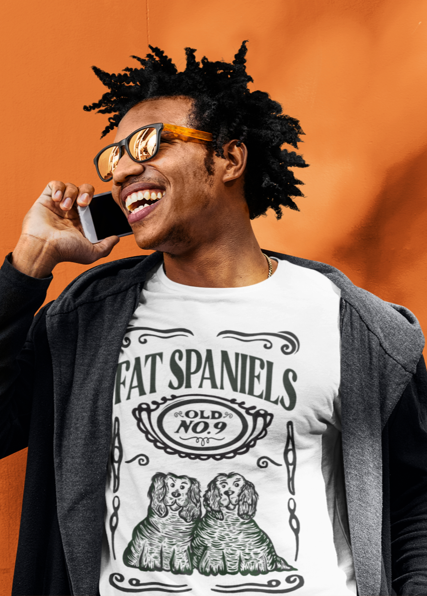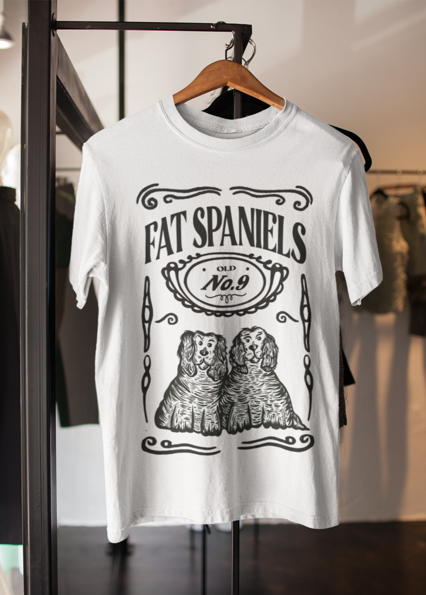 Spread good vibes anywhere and everywhere you go in the world with the Fat Spaniels tee. Worn by every self-respecting whiskey and dog loving rocker in the 80's and 90's.