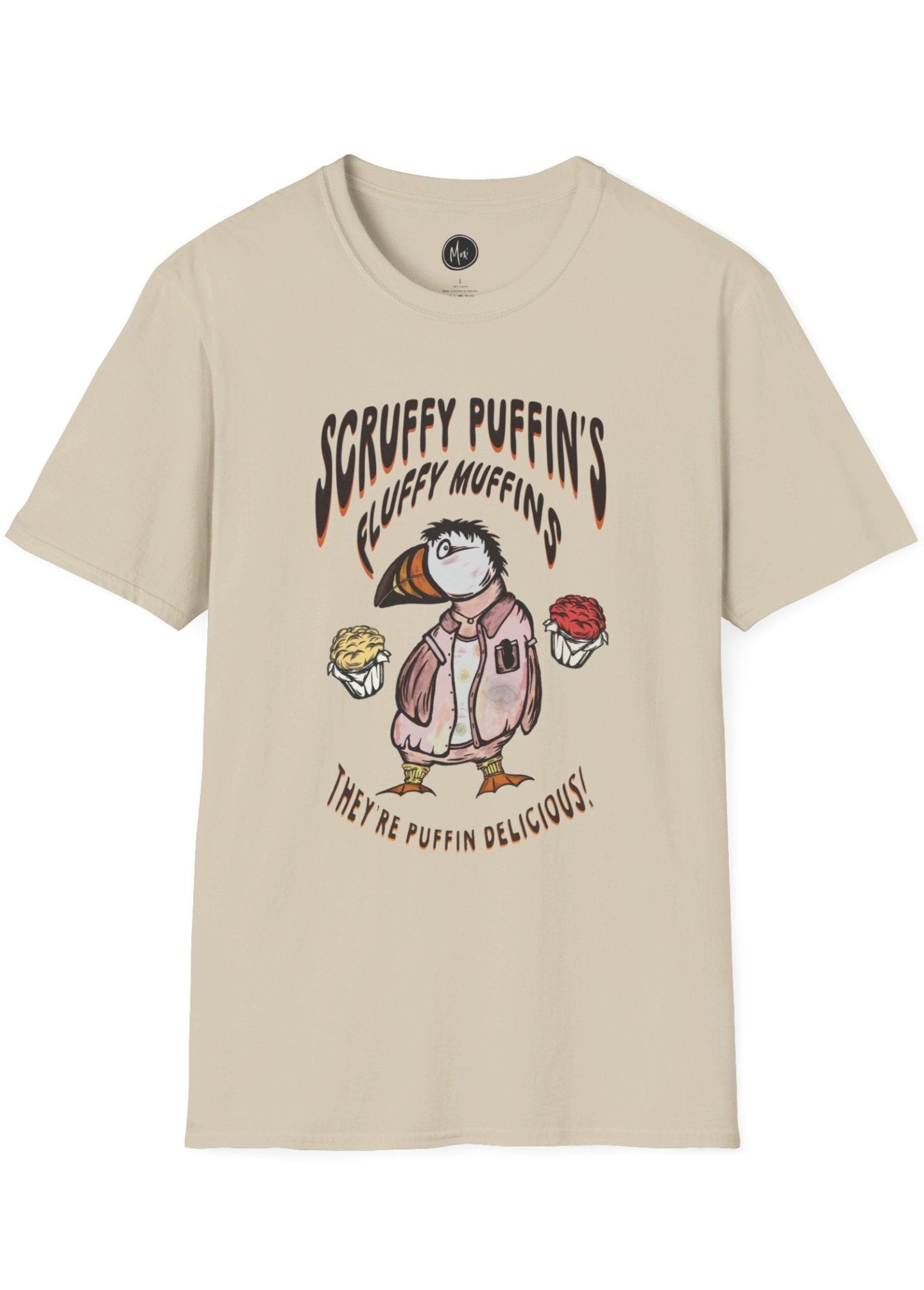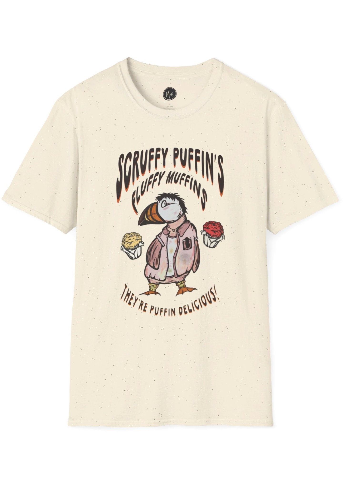 Scruffy Puffin's Fluffy Muffins | Hand-drawn retro brand printed tee