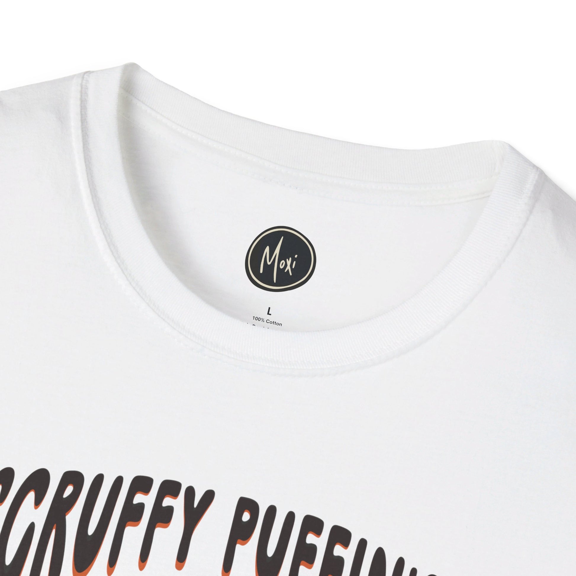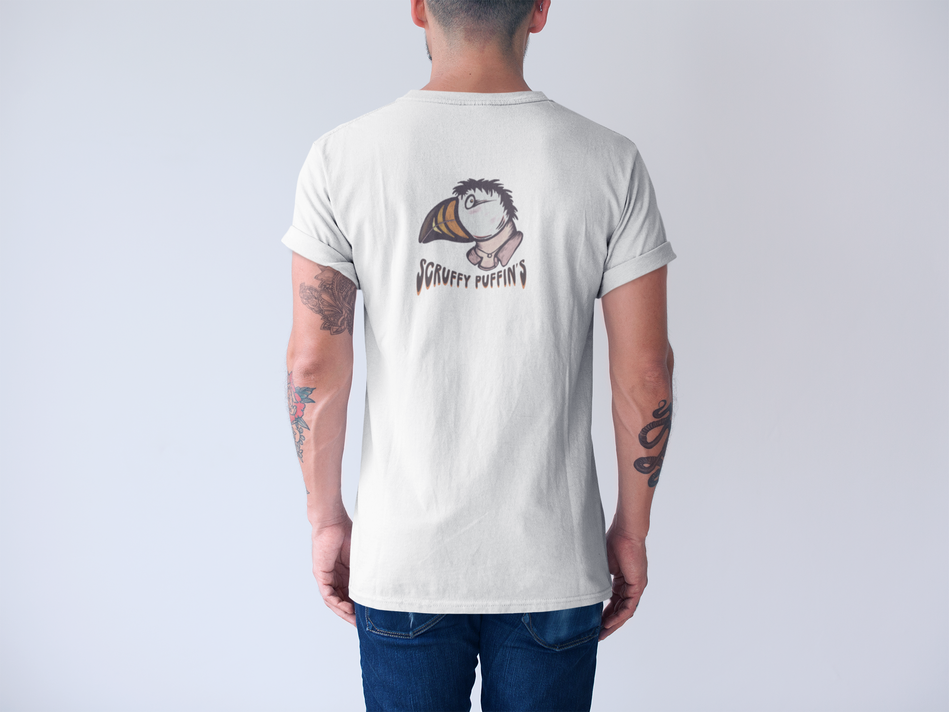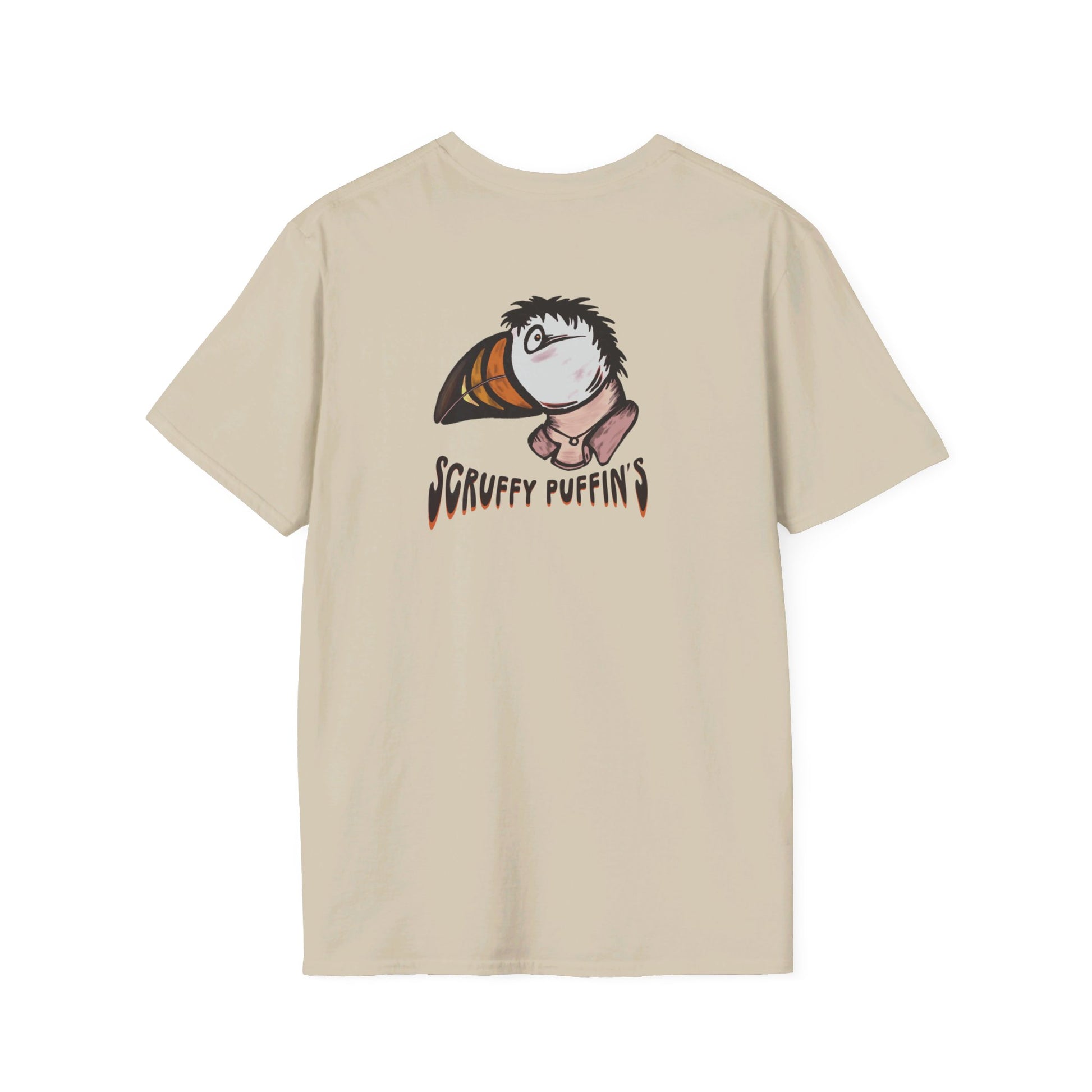 Scruffy Puffin Tee design #2 with puffin front centre.
