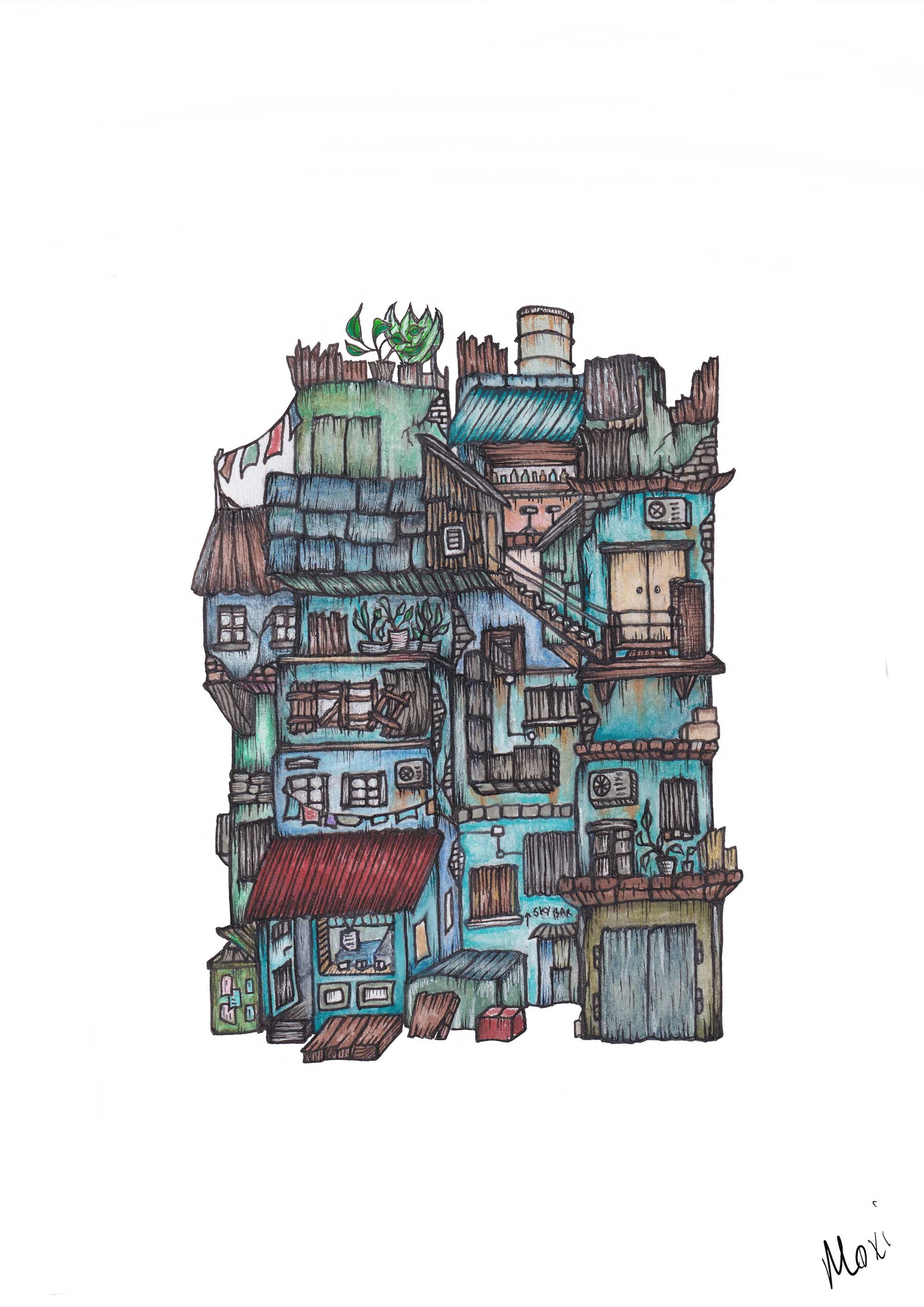 If you can find it. More hidden detail in this fine line sketch with inks and watercolour blending to give a distressed effect.