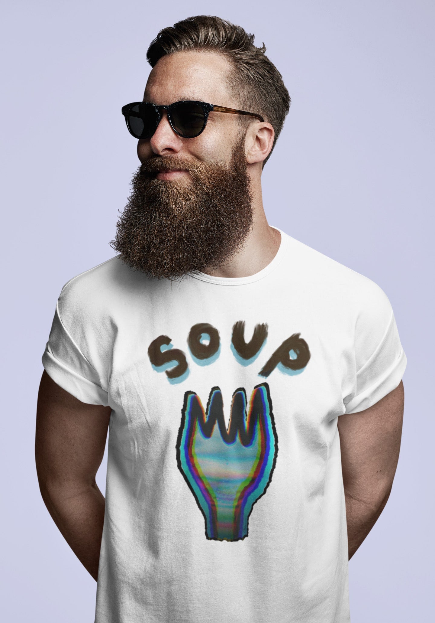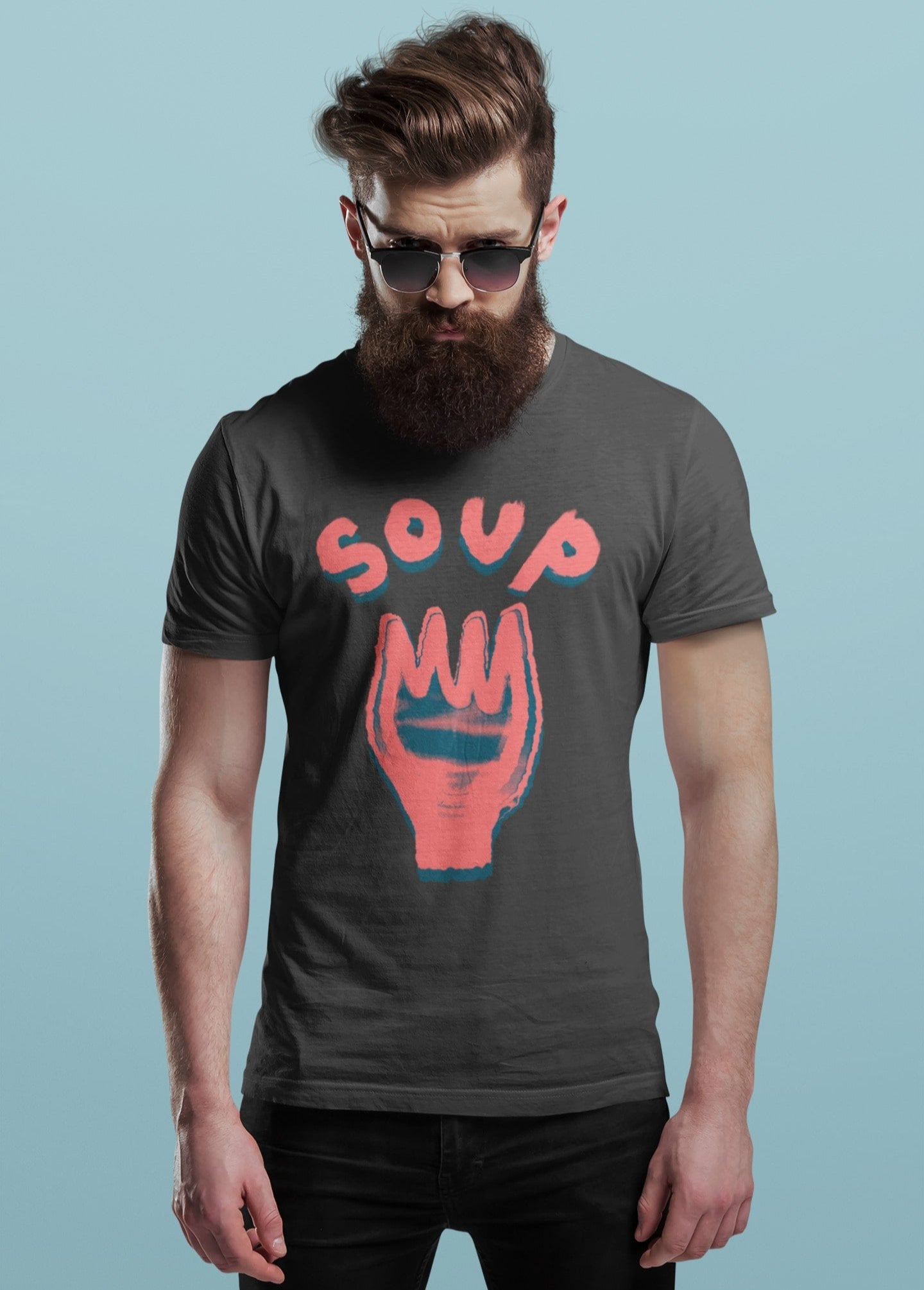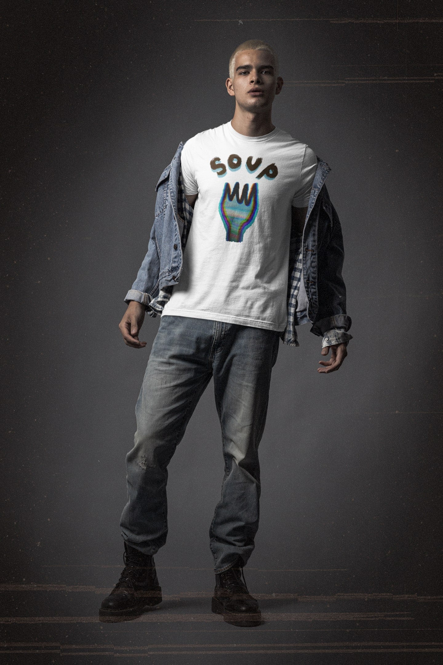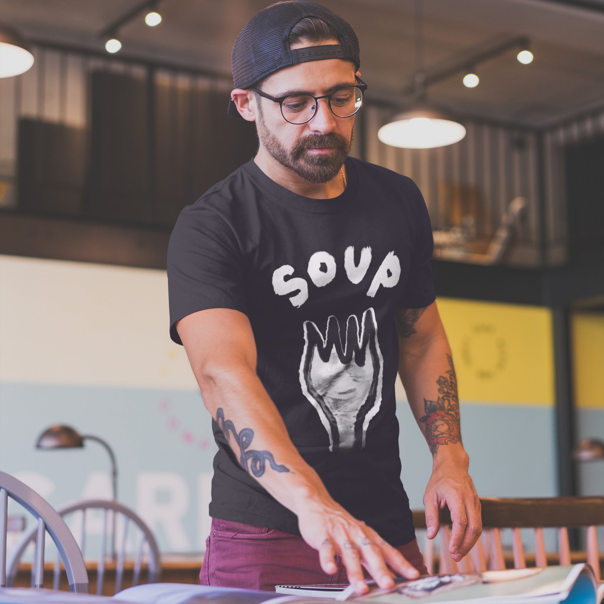 A Man With A Fork In A World Of Soup Tee | Hand-drawn printed t-shirt
