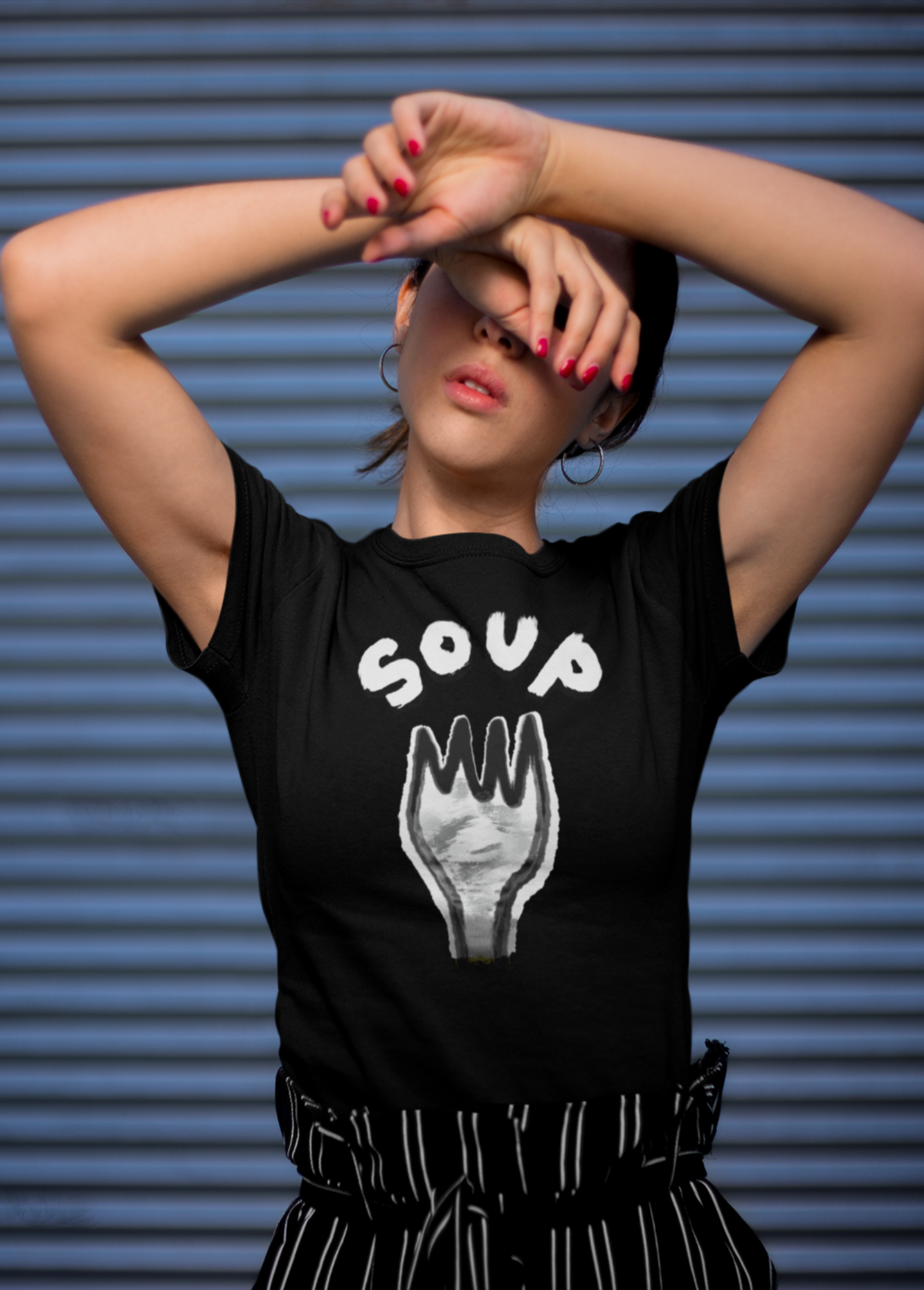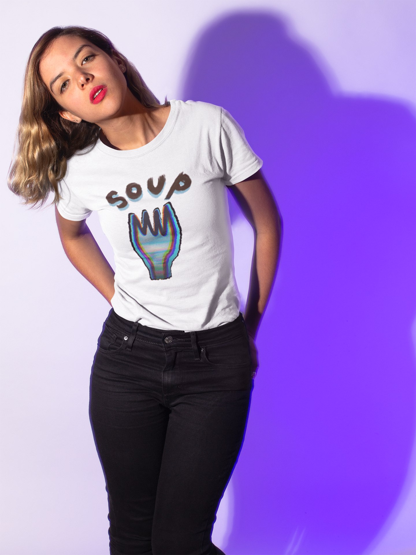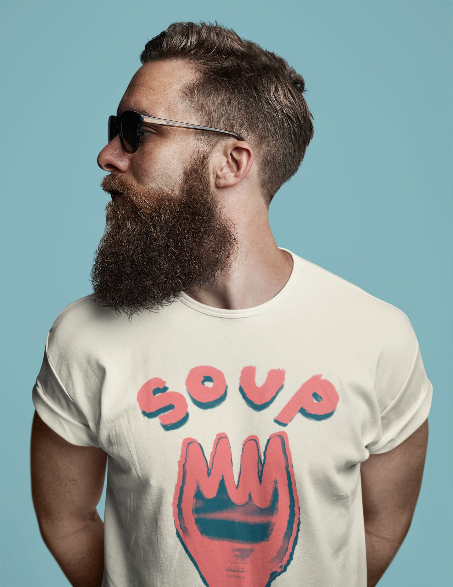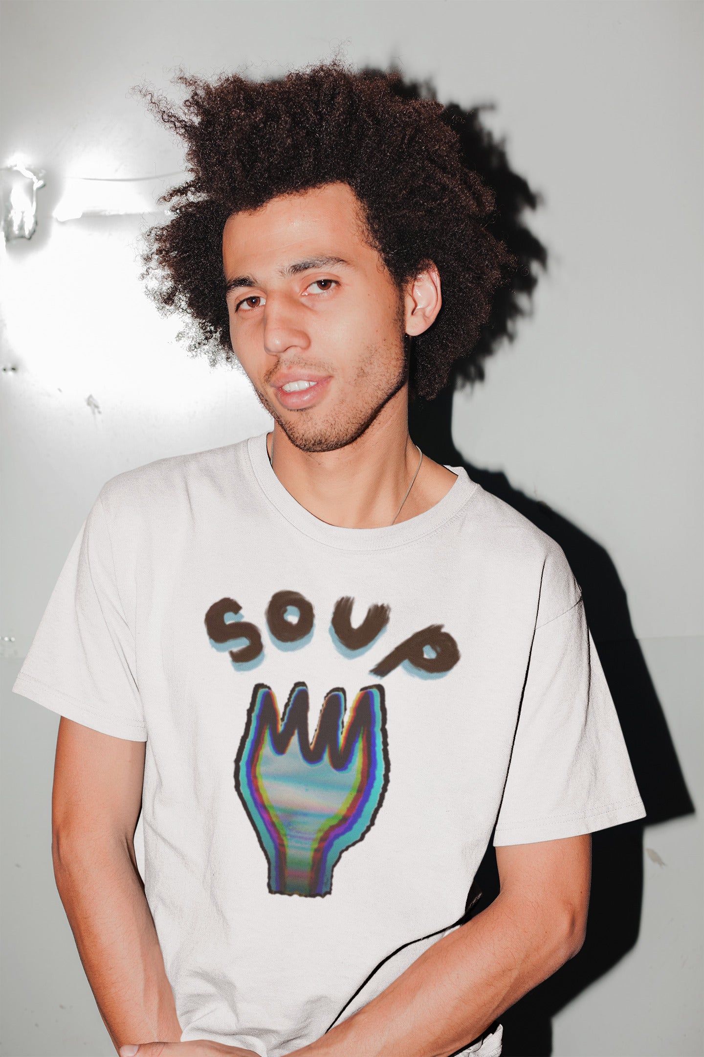 A Man With A Fork In A World Of Soup Tee | Hand-drawn printed t-shirt
