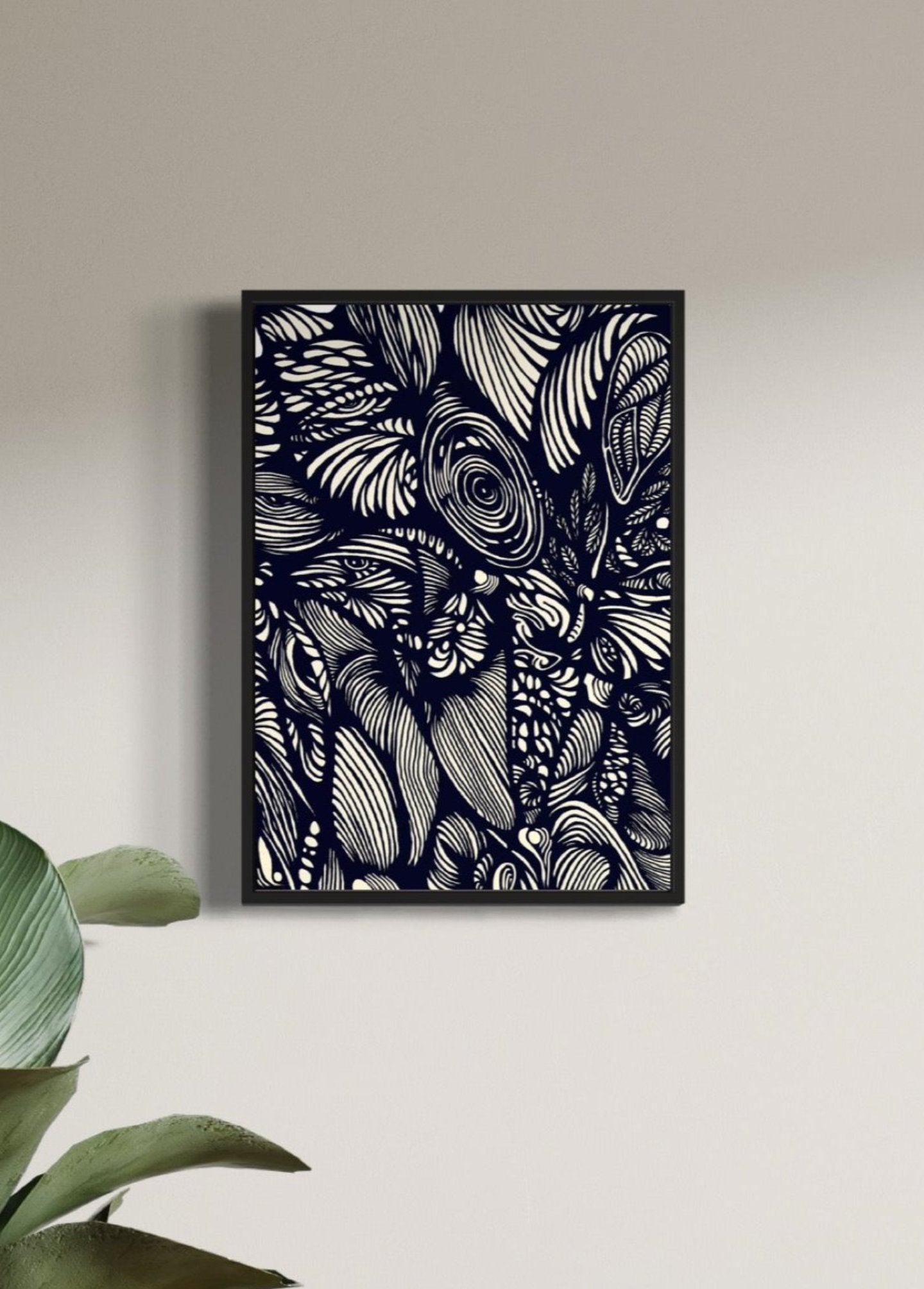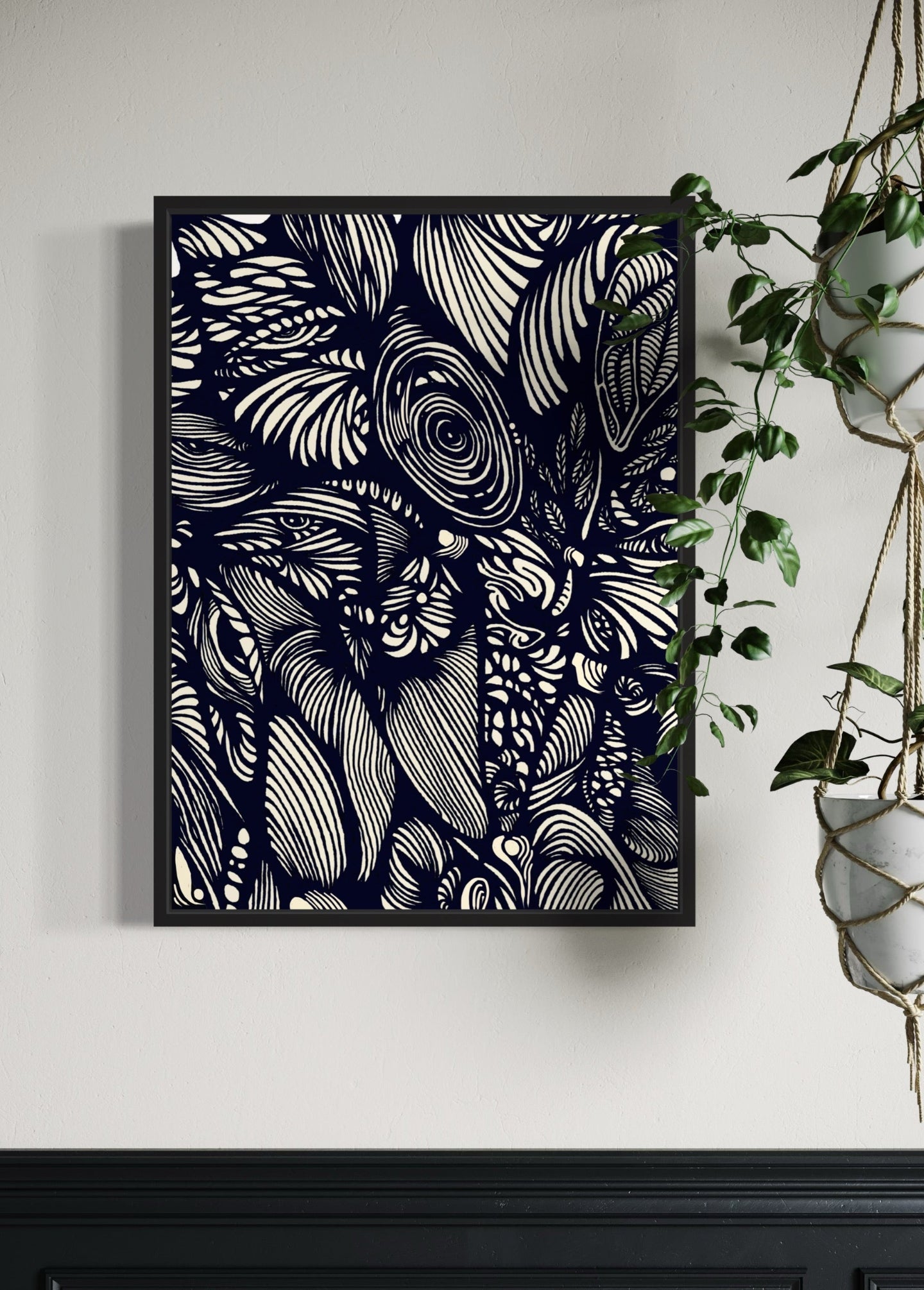 The Forest | Woodcut-Style Line Work | Black and White Line Art Print